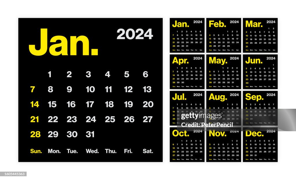 2024 Monthly Calendar Minimalism Style Square Calendar Vector